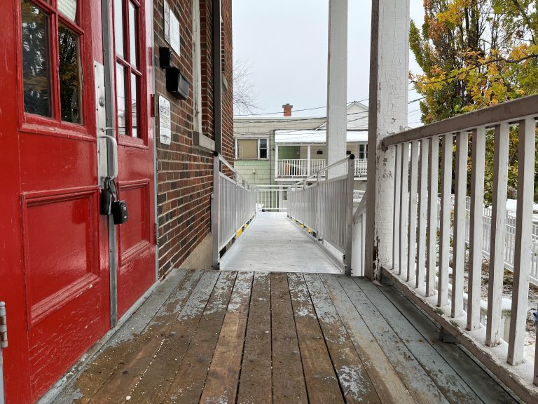 Accessibilité : une nouvelle rampe à l’école Sacré-Coeur Partager Accueil Actualités Accessibilité : une nouvelle rampe à l'école Sacré-Coeur 24 novembre 2025 Actualité / Nouvelle Un pas à la fois, l’école Sacré-Cœur devient plus accessible! Une rampe temporaire vient d’y être installée afin de faciliter l’accès aux membres des organismes occupants. Cette rampe sert uniquement à offrir une option autre que les escaliers pour atteindre la porte d’entrée. Autrement dit, les locaux de l’école ne sont pas encore accessibles aux personnes à mobilité réduite. Une réfection complète de l’école Sacré-Cœur est prévue, incluant l’ajout d’une entrée directement au niveau du sol et une accessibilité universelle. La Ville demeure en attente d’une subvention pour lancer ce projet… restez à l’affût! De nombreux projets d’accessibilité universelle ont été réalisé dans d’autres bâtiments municipaux. Consulter le Plan d’action à l’égard des personnes handicapées
