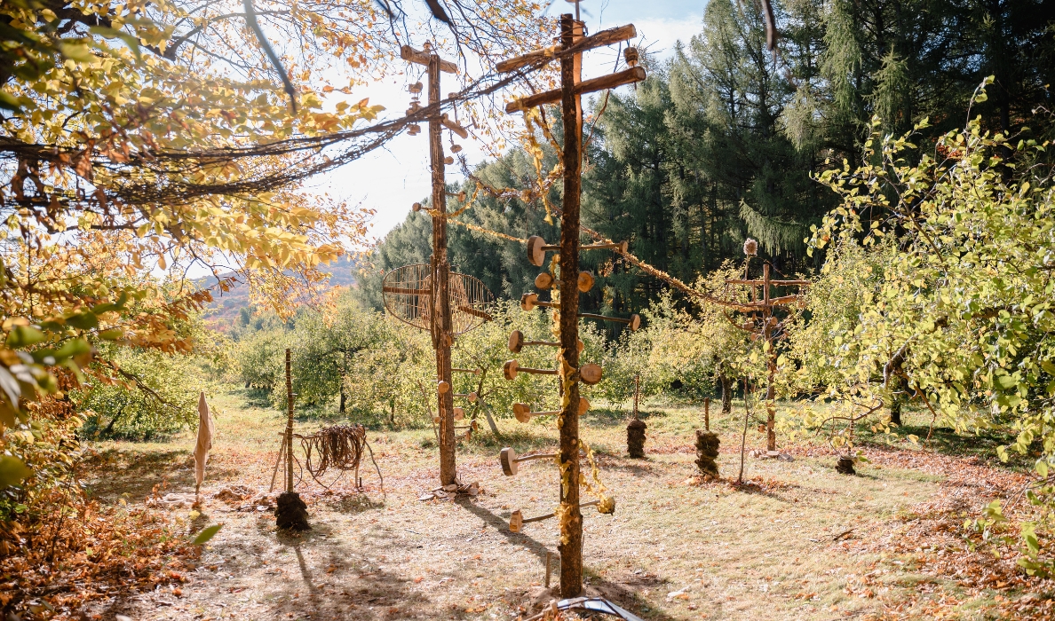 Passionné par les éléments naturels, il crée des œuvres qui racontent des histoires et s’ancrent dans le paysage.