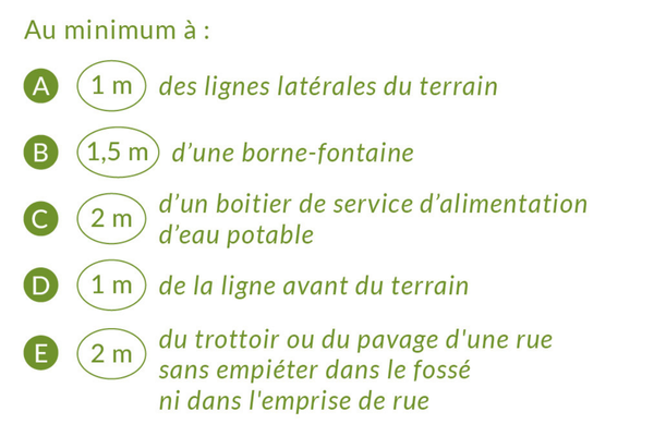 Les nouveaux arbres doivent respecter les distances de plantation minimales suivantes (Règlement 1235, article 269) :