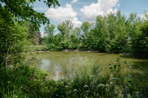 Ce plan d’eau a tout l’air d’un étang naturel… mais il s’agit en fait d’un bassin de rétention construit par la Ville.