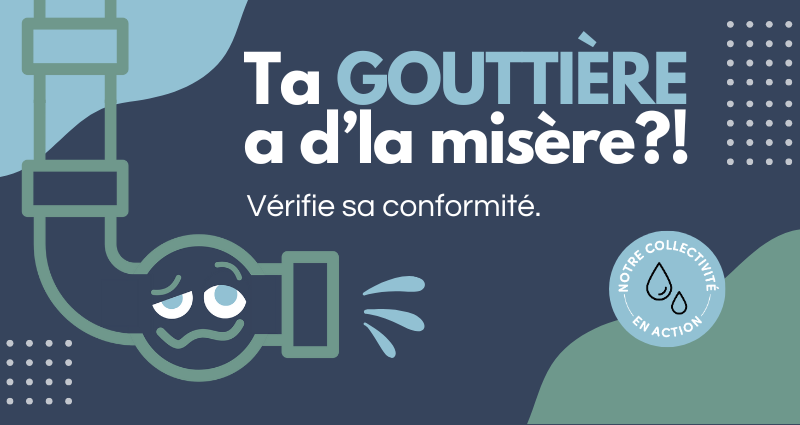 Si vos gouttières sont raccordées au réseau d’égout sanitaire ou pluvial, elles sont non conformes. L’eau de pluie qui tombe sur votre terrain peut alors abîmer votre propriété ou surcharger l’usine d’épuration.
